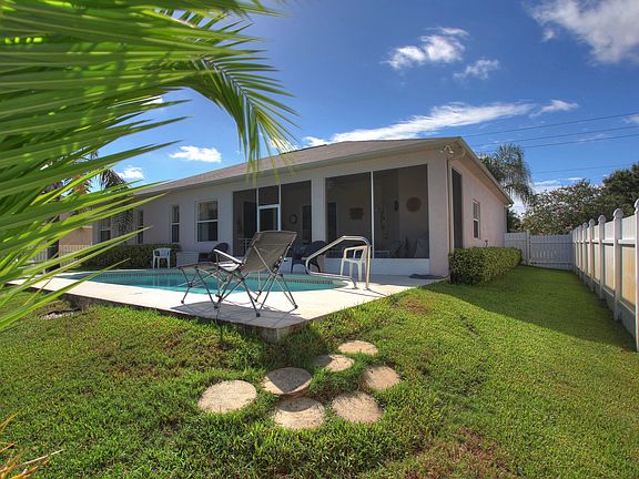 A great 3/2/2 Saltwater Pool Home in the heart of Sebastian. Split floor plan, 10' ceilings, white vinyl fence, screened in garage with 2nd refrigerator. New A/C 2013. Sprinkler on well. Attic has pull down ladder with storage space. June electric bill runs typically $190.00. Must see!