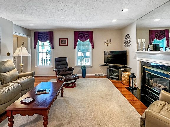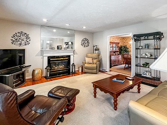 Gas log fireplaceSpacious storage buildingBonus roomBlooming plants and treesLevel backyard