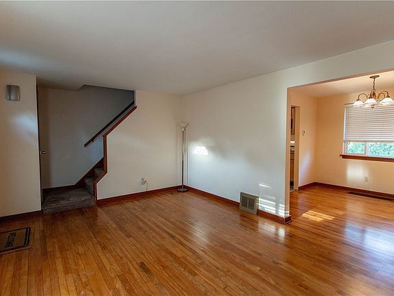 Move in ready home on a quiet street. Beautiful original hardwood floors. Large living room with plenty of natural light. Formal dining room can seat larger groups. Kitchen has been updated and is ready to go. Two well sized bedrooms each with good closet space and hardwood floors. Updated full bathroom. Updated windows throughout. Large driveway that can accommodate several cars as well as an integral garage. Semi finished basement could easily be turned into a game room, office, or home gym. Half bath in lower level. Level back yard with a small patio.
