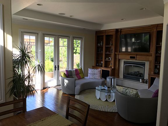 4 bedrooms plus office, 3.5 bath, family room, formal living room and dining room, single story home newly built in 2004 located in a cul de sac within walking distance to downtown Los Altos, and Covington Elementary School. Excellent Los Altos schools. Gourmet kitchen with Sub-zero, Viking, Miele, and Fisher Paykel appliances including built-in Miele coffee maker, 2 dishwashers, and Sub-zero wine refrigerator. Built-in closet organizers, built in library in the office and built in bookshelf+desk in the 2nd bedroom, built-in entertainment cabinet and surround sound, Hardwood floors, double pane windows with screens, french doors, 3 fireplaces, Carrier 2 Zone Central Air Conditioning and Heating. Master Suite with 2 Walk-in closets, shower and jetted tub. Whole house water softener, Bosch washer/dryer, attached 2 car garage with electric vehicle chargers (one Tesla High Powered Charger and one Blink Level 2 charger). Built in B&W speakers and Niles central Audio system, Solar system, outdoor LED lighting, Security System and outdoor cameras. Great outdoor space with built in fountain, firepit, BBQ area under the trellis. Usage of side yard with partial basketball court, outdoor furniture, and gardener included. Will consider one year or multi-year lease. Lot size = 10400 Sq. Ft. + appx 5000 Sq. Ft. (side yard), House = 2688 Sq. Ft. + Garage = 400 Sq. Ft. Available June 5th, 2017. Tenant pays for utilities. Additional deposit for pets.