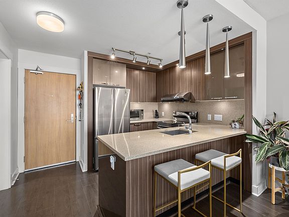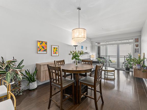 The perfect balance of comfort, convenience & community at Remix by Adera - a boutique building designed for modern living in North Van. This bright 2 bed, 2 bath home is tucked on the quiet east side of the building, offering 801 sqft of thoughtfully designed space. With 9-ft ceilings, radiant in-floor heating (included in strata fees) & a smart NEST thermostat, it’s easy to feel at home here. The open kitchen is a standout, complete with upgraded appliances, perfect for home cooks & entertainers alike. Step out to your spacious and covered patio, ideal for weekend BBQs & morning coffee. Life at Remix goes beyond your front door, a fitness studio downstairs, steps to trails, shops & plenty of restaurants. Quick access to Hwy #1 and commuting is a breeze. OPEN HOUSE: Sat. Oct 4, 2-4pm