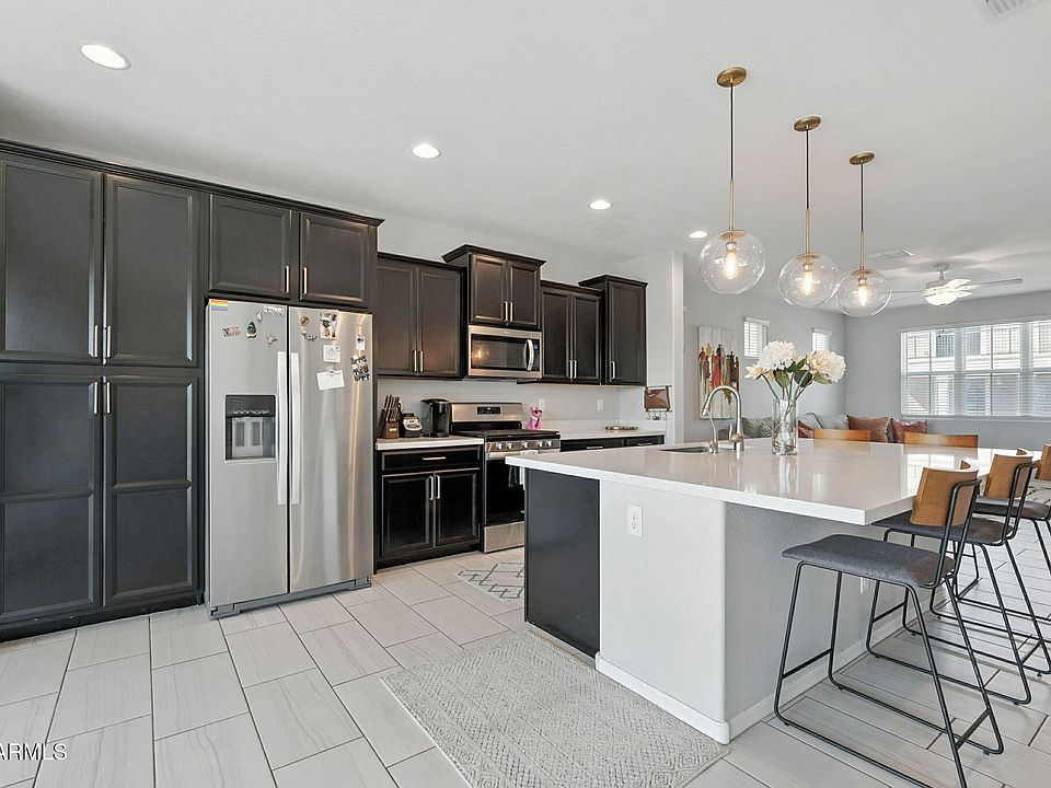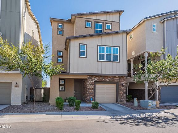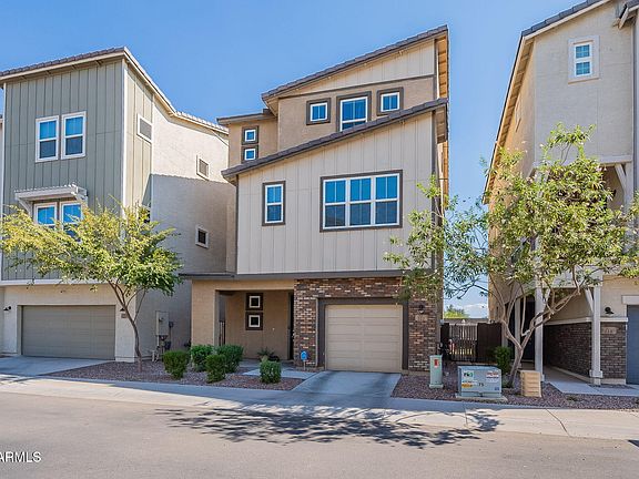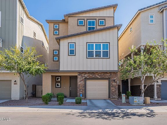 Modern 3-story, 3 bed, 3.5 bath home in Chandler's gated Haven community. The main level showcases an open kitchen with quartz counters, large island, gas range & stainless steel appliances, flowing into a bright living area with a wrap around balcony. Upstairs features a spacious primary suite with walk-in closet & luxe bath. The 3rd floor offers a loft, laundry, full bath & bedroom. A private 1st-floor suite with its own entry & bath is ideal for guests or office. Low maintenance back-yard, pavers and covered patio. Resort-style amenities include a heated pool, spa, BBQ areas, gym, dog park & playground. Prime location near shopping, dining & freeways.