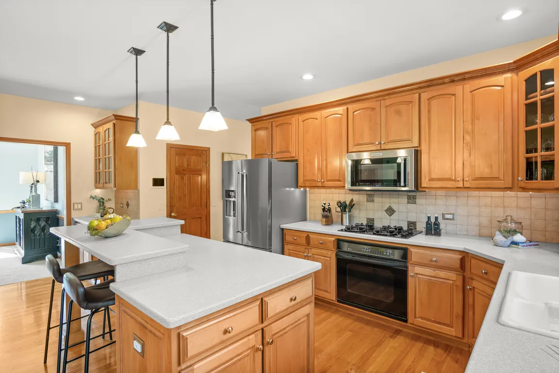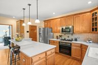 Masonry fireplaceModern neutral finishesProfessionally landscaped lotFull finished basementIsland with breakfast barWet bar with graniteLuxurious primary suite