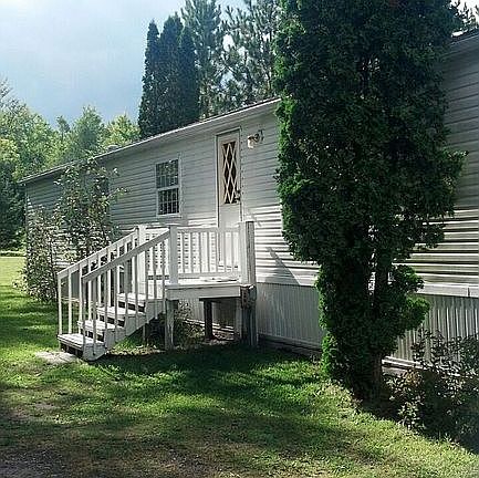 Single wide moble home that sits on 5 wooded acres with a creek. Perfect for year-around or a weekend retreat. 2 story pole barn with 2 car parking. Can come partially furnished. Master bath has been remodeled in 2015 with ceramic tile and Handicapped accessable shower. Newer furnace.