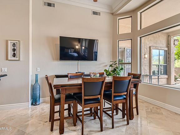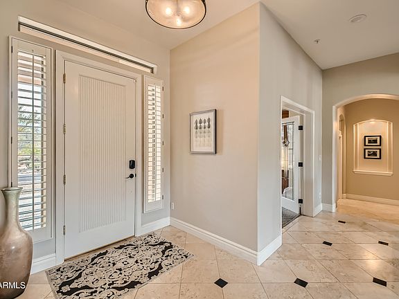 Welcome to your desert beauty, resort style, retreat in fabulous Scottsdale with all the comforts of home away from home. Fully furnished, 4 bedroom plus three baths. Formal living and dining with a wet bar, well equipped spacious kitchen for entertaining. Family room with a serene fireplace leads out to a large covered patio overlooking a heated negative edge pool and spa and a very private backyard. The split primary suite offers a cozy fireplace, wet bar, access to the spacious backyard, and a bathroom fit for royalty. All this to enjoy the fantastic weather and all the area has to offer: festivals, concerts, top rated golf courses, spas, fine dining, hiking, cycling, thriving art scene, The Phoenix Open, spring training, and the Arabian horse show to name a few.