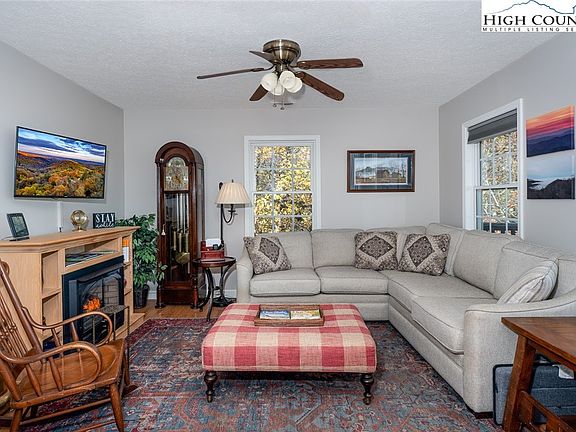 Welcome to 7330 Harmon Lane, a serene mountain retreat, set on 3 unrestricted acres with layered views of the gorge and Blue Ridge Mountains beyond. Built in 2007, this three-bedroom, two-and-a-half-bath home offers desirable one-level living and an easy entry layout, complete with an oversized garage and ample opportunity to add your personal touches. Ideally located just minutes from Main Street in Blowing Rock, this property combines privacy, convenience, and stunning natural beauty. The main level features an open-concept great room designed to highlight the mountain vistas, complemented by a sliding glass door and a cozy freestanding propane fireplace. The primary suite, two guest bedrooms, and a full guest bath are thoughtfully positioned on the main floor along with a convenient laundry room. The lower level provides additional flexible space, including a half bath, workshop, and a bunk room. The basement closet, bathroom, and bunk room were finished without permits. A wraparound, partially covered porch invites you to enjoy blissful sunrises, crisp mountain air, and endless views throughout the seasons. Additional highlights include a radon mitigation system, the interior and exterior have been recently painted, and portable generator. See the documents section for additional improvements. The property is being offered partially furnished, with the option to purchase workshop tools separately. A local rental company estimates this property could produce $25,000 - $45,000 in gross annual revenue.
