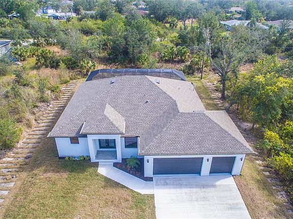 MOVE IN READY! Beautiful 3 bedroom, 2 bath, pool home with a hot tub, flex room and a 3 car garage. This new construction home features porcelain tile throughout, 9'4 ceilings with ceiling trays in living area and owners bedroom. The kitchen has all wood 42 inch cabinets with crown molding and quartz counters, just off the kitchen the laundry room has additional cabinets for extra storage. Bathrooms also have all wood cabinets and quartz countertops with porcelin tile to the ceiling in both shower and bath area. Sliding doors from living area, kitchen and owners bedroom leads to the large lanai and pool area. The garage holds 3 full size vehicles.