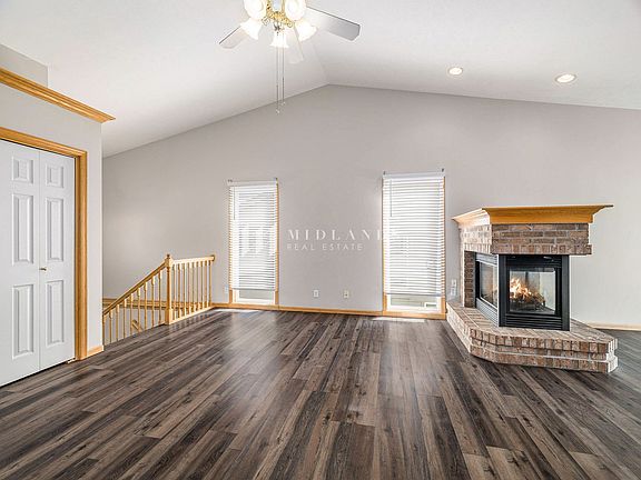 Large partially fenced backyardLarge finished family roomOpen floor planVaulted ceilingDouble sided fireplaceWood floorsNeutral colors