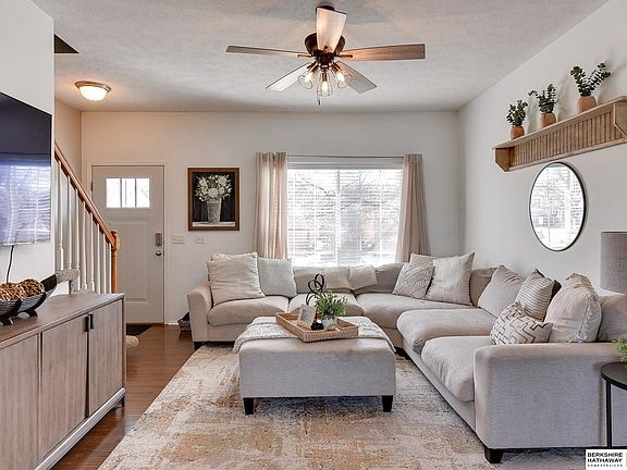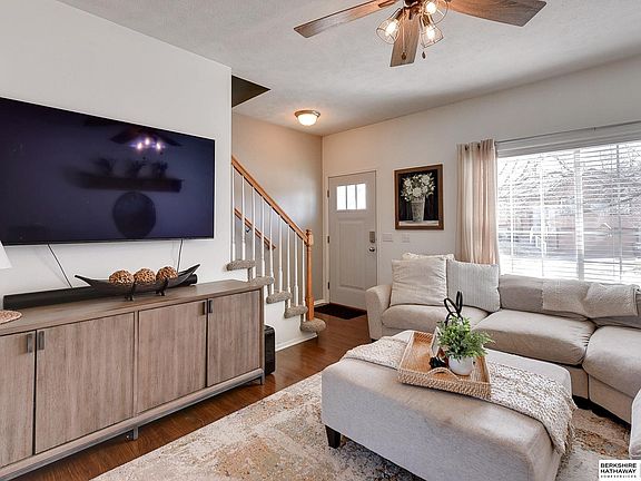 Beautiful Millard 2-story home with 4-bed, 4-bath and 3 Car Garage! The home features a large living room with gas fireplace and rich wood floors throughout the main level. The bright cheerful kitchen boasts an 8' sliding glass door, quartz countertops, stainless steel appliances, and a stylish backsplash. Solid surface counters in all baths. Convenient quartz drop zone area with bench and hooks to keep you organized. Enjoy the spacious primary bedroom with updated bath offering shiplap walls, fresh white subway tiled shower, spacious linen closet and modern fixtures. Bonus play area on the second floor! The family room is perfect for entertaining with modern laminate flooring, an additional bath and walkout access to the private fenced backyard. Relax on the deck with fabulous views. New carpet 2024,Newer Roof (4.5 years) and HVAC (3 years). Conveniently located near award-winning Millard Schools. Plus Low Mill Levy (taxes) for area (2.02), equals a lower monthly payment for you! AMA