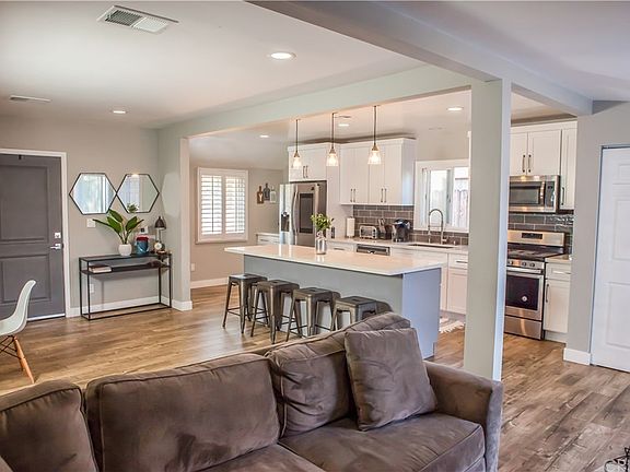 An amazing opportunity to OWN a well maintained REMOLDED HOME in 2018 with a PERMITTED 2019 DETACHED GUEST HOUSE/CASITA with its OWN ADDRESS!! The Main house remains with semi-new/well maintained laminate floors through out the entire home, white kitchen cabinets, stainless steel dishwasher, stove, microwave, farmhouse sink. Calcutta Quartz counter-tops, kitchen backsplash, and LARGE 8' KITCHEN ISLAND with Pendent lights. OPEN FLOOR PLAN with LOTS of natural light, recesses lighting through-out, white wood blinds, and double pane windows. Bathroom has been well maintained with original remolded custom tile work and vanity. The plumbing, electrical, and USB outlets have been well maintained since newly installed 2018 along with the spacious indoor laundry area. The 2018 semi-newly installed cement patio, walkway, wood fence, drip irrigation system, sprinklers, beautiful succulents, natural grass and synthetic grass at OPEN/HUGE backyard make an amazing entertainment area for all those HOLIDAYS/GATHERINGS/CELEBRATIONS. Front and Rear yard have amazing shade for those summer valley days. All graded level schools, transportation, shopping centers, malls, and public transits are conveniently located.