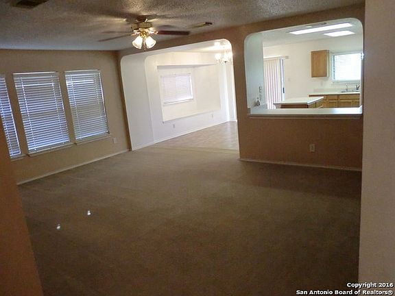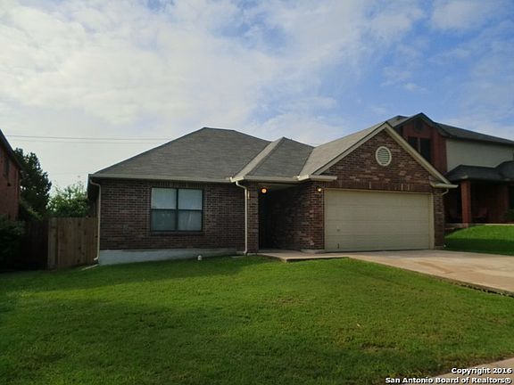 Great one story 4 sided brick at an awesome price * 3 bed/2bath with open floor plan* 2" Fauz Wood blinds throughout * Large master with double vanity and large shower *Pre-Plumbed for Water Softener*New Roof As of May 2016 * Garage Door Opener * Gutters * Great location just minutes from Randolph AFB * Awesome Neighborhood amenities include Park/Pool/Playground/Clubhouse * Come see this home before it is gone *