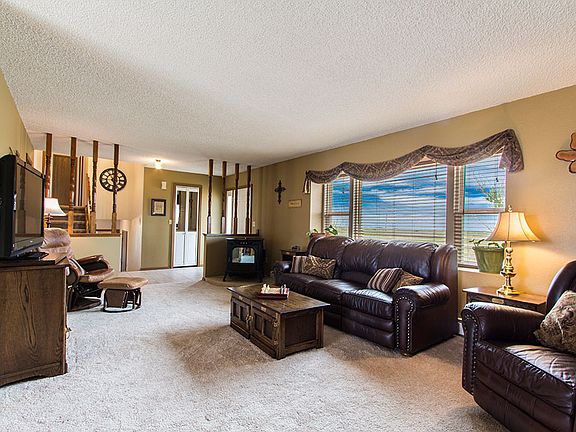 Outstanding updated home with unobstructed views on agricultural acreage! Partially fenced 35-acre lot with heated workshop. Attractive tri-level model with finished basement. Light, bright and open floor plan great for entertaining. Kitchen opens to dining and living room. Beautiful remodeled baths. New carpet. Double pane windows. Expansive master suite with private bath, walk-in closet and bonus closet. Spacious secondary bedrooms share a remodeled full bath. Lower level encompasses family room, large bedroom and three-quarter bath. Plenty of space to spread out in the finished basement with recreation room, office/craft room and storage space. Outbuildings include 10 x 16 utility shed and 15 x 30 heated work shop. Oversized 2 ½ car garage is 725 square feet! Covered patio. New metal roof in 2012! Peaceful, rural setting zoned for livestock and horses. Live a quality life in the country!