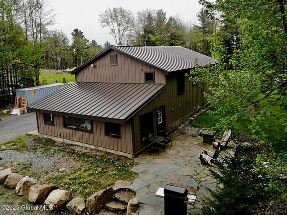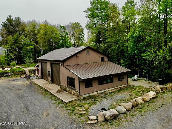Fabulous opportunity to own a ''Barndominium'' on 27 acres of wooded privacy! BONUS - sold w/ a rental income property 7337 Bills Rd that generates $1300/month on mo to mo- 2 bed/1 bath & new roof on adjacent property SBL 147.-1-78. The 2 properties are being sold together. Barndominum has an office, bedroom, full bath, kitchen, & living room area with nice rustic finishes, radiant heat, concrete floors, 4 zones for heating and 2 12x12 garage doors. Outside there is a flagstone patio, vegetable garden & chicken coop. Seller in the process of an addition which will expand it to 2 bedrooms, see attached plans. Many possibilities abound here-make it your wooded retreat, homestead, build a new custom home, expand the current barndominium, or make it your spot for collectible cars/toys!