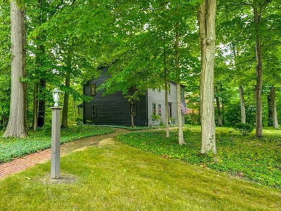 Situated quaintly in White Horse Acres, an established Hudson neighborhood characterized by a lovely pond, community playground, maturely treed lots and distinguished front elevations, this bespoke redwood-sided Colonial is in search of a perceptive Buyer who values integrity, authenticity, and unparalleled craftsmanship. A Charlie Britton Easton home, every inch is steeped in history and wrapped in character. The heart of this home is in the details (down to the rosehead nails!): repurposed barn beams, 4 panel solid wood doors, stencil trimwork, intricate mouldings, sourced primitive fixtures, an English heritage colorway, and wide plank hardwood throughout. The family room is off the entryway and welcomes with character in Williamsburg blue! Warmed by an expanded brick fireplace, this space is made for gatherings. Keep the fire roaring with a second wood burning fireplace in the sunlit living room. Dine with character in the formal dining room or casually in the eat in area just off the kitchen that features a large pantry that would make a great 1st floor laundry! Up the turned staircase there’s room for everyone with 4 bedrooms , all graciously-sized including the primary en suite. The main bath is designed for sharing. Plenty of storage is offered in the lower level and there is a 2 car garage available for your vehicles. The spectacular setting is a wonderful advantage to this home with beds of violets, various perennial plantings, and visits from deer, rabbits, and more of nature’s most charming creatures that can also be enjoyed from the sizable screened porch. Transcend what is trending and immerse yourself in the comfort of a classic. As meticulously preserved as it was built, your forever home awaits!