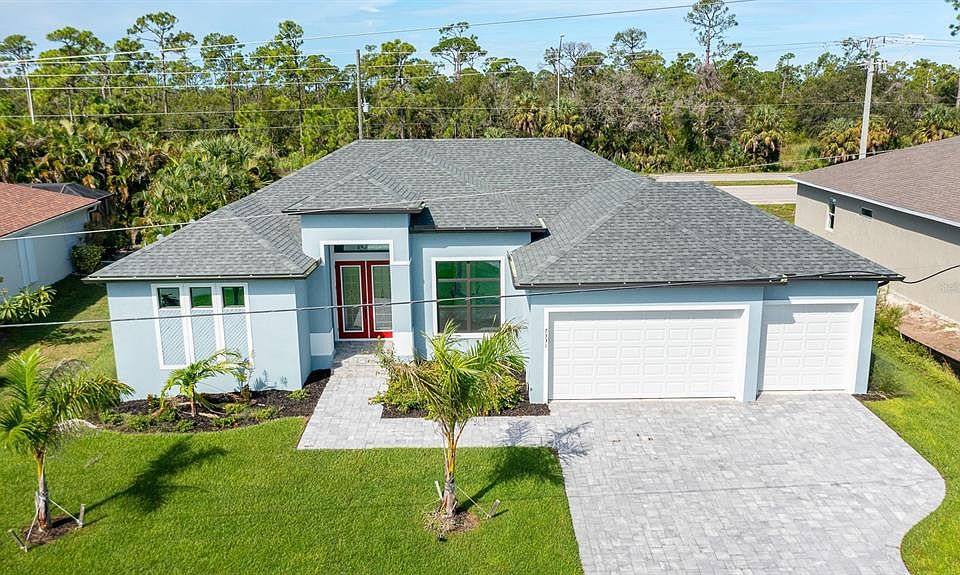 Welcome to this stunning custom New Build in the highly sought-after deed restricted community of Burnt Store Meadows. This beautiful 3-bedroom, 3-bath, 3-car garage pool home boasts 2,021 square feet of luxurious living space. As you step inside, you'll be captivated by the high ceilings and contemporary lighting throughout. The living room features a double tray ceiling and zero-corner slider, allowing for an abundance of natural light. The upgraded kitchen is a chef's dream, complete with granite counters, wood cabinetry, stainless appliances, and center island with a convenient breakfast bar. The interior of this home also offers a separate den, perfect for a home office or additional living space. The master bedroom is a true retreat, featuring his and hers walk-in closets, dual vanities and a huge roman shower in the master bathroom. Split floor plan offers 2 guest suites with full baths. Step outside onto the covered lanai, where you'll find brick pavers and a screened saltwater pool with a sundeck - the perfect place to relax and unwind. The privacy hedges provide a serene atmosphere, and the west-facing pool allows you to enjoy breathtaking sunsets. This home is ideally located on quiet cul-de-sac street offering easy access to I-75, Punta Gorda airport, restaurants, shopping, schools, parks, and golf. A short drive will take you to downtown Punta Gorda, where you can indulge in fishing, boating, community events, and entertainment. With its convenient location, commuting north to Port Charlotte or south to Ft. Myers is a breeze. Schedule your private showing today! Don't miss out on this incredible opportunity. Schedule your private showing today and make this your dream home in Burnt Store Meadows!