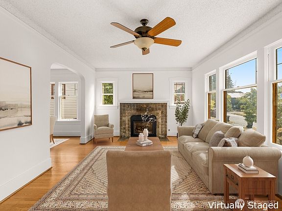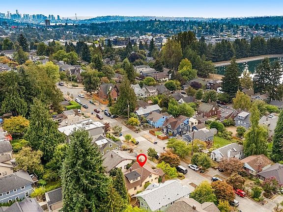 Charming Craftsman in stellar location! Original detailing preserved, hardwoods floors on main, a gracious entryway & living room w cove ceiling & fireplace has Batchelder tile surround, and great dining room. Kitchen has wood cabinetry + a darling eating nook overlooking the backyard. Two Bedrooms on the main + a full bath. Head upstairs to a suite retreat w its own 3/4 bath, AC via minisplit, & cedar-lined closet space. Tons of opportunity in the lower lvl: laundry, a finished office room, storage, a side door leads out to backyard. Updated systems: natural gas forced air heating, AC, new roof, newer H2o tank, sewer liner. Private backyard is fully fenced. Detached garage. Wonderful location just mins to I5 & Roosevelt Light Rail Station!