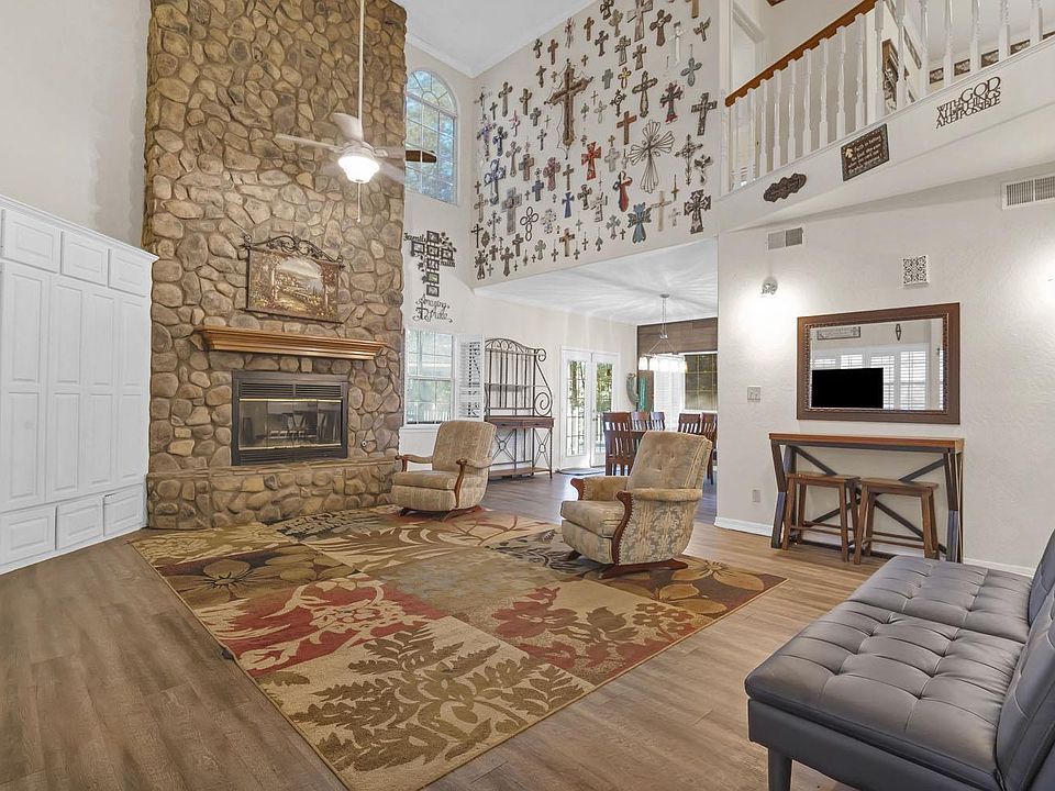 Screened-in heated poolCozy fireplaceGrand residenceExpansive estateCharming loft areaBlack silestone countertopsPicturesque beauty