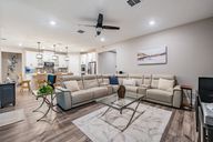 - Ceiling Fan(s), Crown Molding, Eating Space In Kitchen, High Ceilings, Kitchen/Family Room Combo, Living Room/Dining Room Combo, Open Floorplan, Primary Bedroom Main Floor, Smart Home, Solid Wood Cabinets, Split Bedroom, Stone Counters, Thermostat, Walk-In Closet(s)
