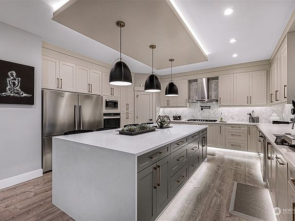 New Construction home in Greenfield lane in Lynden with a 2525 sqft home with 2 primary rooms, 1 on the main with walk in tiled shower with glass door & double vanity and the second Primary room is attached to the roof top deck with walk in closet and Elegant bathroom. Elegant kitchen with quartz counter tops, soft close cabinets, huge breakfast bar, a walk-in pantry, stainless steel kitchen appliances included, under cabinet and floor lighting and side by side fridge/freezer. floor to ceiling stone covered gas fireplace, with lots of windows to let in all the natural light. Large 2 acres lot with space for your shop, gazebo & garden. This home is a presell and not started, 5 bedroom with 3 car garage.