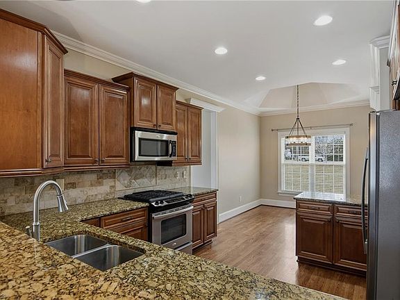 Heavy moldingsGranite countertopsCovered trex patioNice-sized laundry roomGas stovetopMain-level primary suiteWalk-in closet