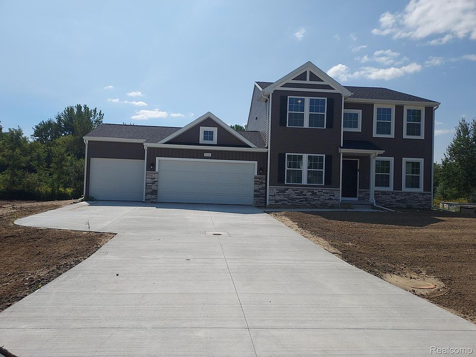 Newly constructed colonial in the Bear Creek Community. This 2-story home boasts features including: 10-yr structural warranty, energy efficiency, attached 3-car garage with insulation, dry wall and fire tape, 10x10 treated deck, humidifier, quartz counters in designer kitchen upgrade including island with extended edges, French door entry to the den, vinyl flooring on entire main level, dual sinks in the primary bath, upper level laundry, and covered front porch entry.