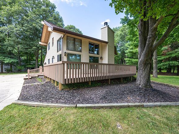 This contemporary home sits on the 2nd hole of the Royal Golf Course. Watch from your wrap around deck as the golfers tee off right in your back yard! The home boasts cathedral ceilings and an open floor plan, that gives the feel of spacious and airy. The views of the Little Muskegon River are absolutely stunning, especially with all that natural light pouring in through the large windows. Being a Canadian Lakes property owner means you have access to some great community amenities that we have listed.