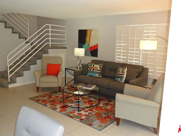 Just steps from El Paseo Gardens! EXECUTIVE Highly sought after contemporary condo has been totally upgraded featuring Stainless Steel Appliances,Quartz Counter Tops throughout kitchen and baths, Beautiful Custom Tile Showers, featuring White Son Cabinets, Glass Strip Tile, Tile walls and FloorsGorgeous Master en suite bath features Wall to Wall Vanity, Mirrored Closet Doors in Master and Guest Rooms. Retreat on your Master Patio and enjoyas you take in the majestic views. Nestle in for the night after a day of enjoying hiking, sports & poolside activity with Custom Blackout Shades & Plantation Shutters throughout this Executive Turnkey, Furnished rental, This is the perfect retreat, LOCATION IS EVERYTHING