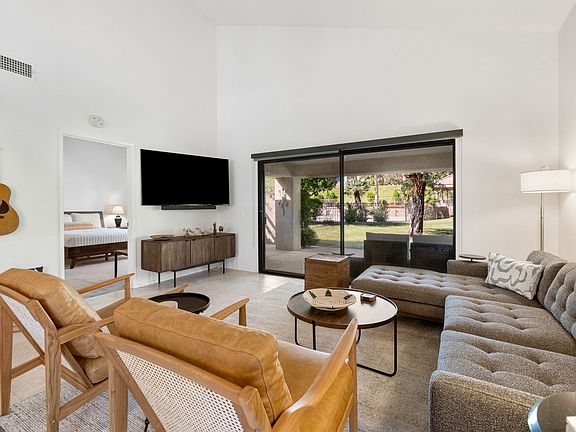 Inside, you'll find granite slab countertops, spacious bedrooms and updates throughout. The primary bedroom has a queen-sized bed, and the guest bedroom has a king-sized bed. Each bedroom boasts its own generous private patio, There is an epoxy-floored garage with laundry inside. The covered carport and driveway are provided for tenant parking.
