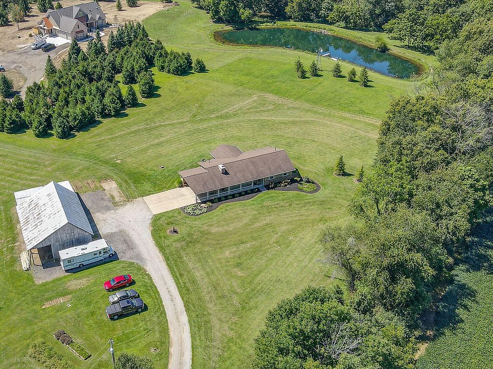 Secluded Ranch Home on 10 ac. located just minutes from Buckeye Lake & Granville. This comfortable home has been nicely updated including the Country Kitchen which offers granite countertops, ceramic tile backsplash, SS appliances & new laminate flooring. Totally remodeled bathroom boasts custom tile work, granite countertops & jacuzzi tub. Newer HVAC & heat pump (2014). New windows 2019, Freshly painted exterior, new concrete approach & fence at entrance. Cozy screened porch offers amazing views of pond & wildlife. Large Living Rm. features a brick raised hearth wood burning fireplace w/ built in shelves. Covered front porch, Large Owners' Suite w/ double closets. High speed internet & cable. Built in security surveillance. Large Barn w/ loft & 26' x 35' gar. w/ concrete flr. & woodburner