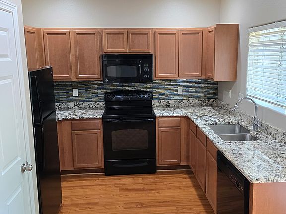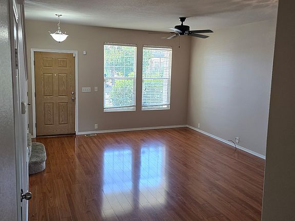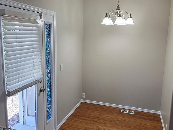 Townhome in the quiet countryside neighborhood of Fountain. This two-bedroom 2-bathroom Townhome with 2 reserved parking spots offers a covered front porch and is a great way to enjoy the outdoors. With nice vinyl wood floors, The kitchen has beautiful granite countertop, a colorful tile back splash, and a dining nook for easy access. Views of the front range mountains. The primary bedroom has vaulted ceilings and a walk-in closet. Very spacious and adjoins to the bathroom. The second bedroom is very spacious as well and has a large closet for storage. Enjoy the ease of doing your laundry upstairs by your bedroom! Washer and dryer included! Don't miss out on this beautiful townhome!