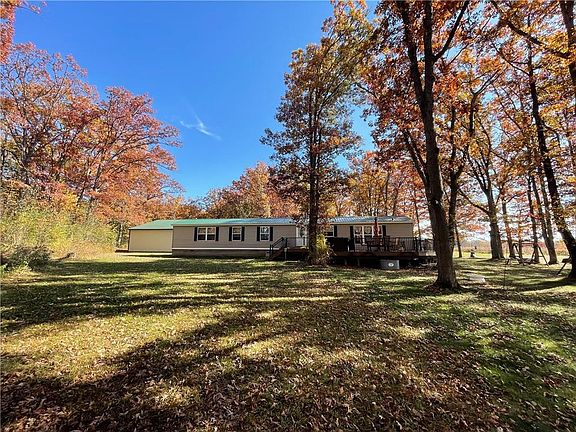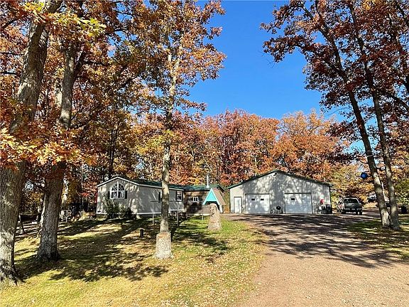 Gorgeous location just minutes from New Auburn and Chetek. Pretty and private 7 acre lot with large shed. Home features large private Trex deck with attractive aluminum railing. 72X40 heated pole building/shop with hoist, walk-in cooler, with water and plenty of storage for all your toys. Home includes steel roof, hickory floor in living room, new water heater and new pressure tank. Beautiful yard with mature trees including apple trees, large deck and included hotub. Extremely private setting surrounded by wildlife with great hunting. Located just 40 min north of Eau Claire.