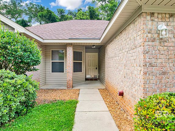 Beautiful home like new in Franklin Square centrally located off Whispering Pines. Close to shopping, Highway 98, and 3 miles to I-10. Home is at the end of a cul-de-sac with No HOA dues. Property is semiprivate with no neighbors in front or behind. Good room sizes in a well laid out- open floor plan. Has 3 bedrooms and 2 bathrooms in 1486 Sqft. The kitchen opens to the large living room and dining area, is divided by a breakfast bar. The kitchen has all new appliances (electric range, refrigerator, microwave, & dishwasher), quartz countertops, and recessed lighting. Great room has high ceilings. Double French doors in the living room look out onto the patio and wooded area. Large master suite with very large walk-in closet and bath/shower on one side of the home, two bedrooms and full bath/shower on the opposite side of home. New luxury vinyl plank flooring throughout, interior has been freshly painted including all trim and doors, interior truly looks like a new home. Separate laundry room. Double garage with shelving. Energy Star Qualified, Low E-Glass Energy Star windows, and superior insulation allow for much lower electric bills. Come take a look at this move in ready home! Home is vacant and easy to show. New Privacy Fence being installed week of 3/10/2025. Buyer to verify all information during due diligence.