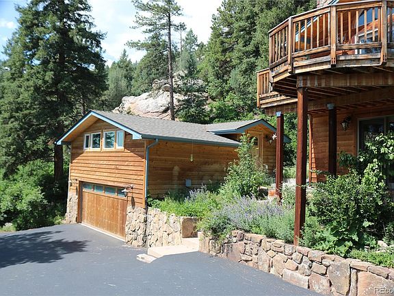 Fully remodeled split level with unique touches on 1.7 private acres in the Perry Park golf community, close to the clubhouse. Lots of mature trees, natural red rock formations, stone work, and water-wise perennials on the property. The open concept great room/main kitchen/dining room opens out through large French doors to a large front deck that looks out on beautiful views of more natural red rock formations and the Big D meadow below. Large natural stone wood burning fireplace in the great room for curling up on winter nights. Great home for the gourmet chef with a top of the line chefs kitchen featuring a commercial gas range and all top of the line appliances, soapstone sinks, beautiful granite and natural stone tile, and custom espresso stained cherry cabinetry and large island. There is also a large additional bakers kitchen, additional pantry space, and laundry room with utility sink on the lower level. The great room/main kitchen/dining room opens out through French doors to a large front IPE deck that looks out on beautiful views of more natural red rock formations and the Big D meadow below. Hardwood runs throughout the home with the exception of the lower level den, which has been newly carpeted. Newly paved driveway and large detached 2-car garage with a large upper level that could be finished for a hobby area or additional living space. Two large bedrooms with full updated bathroom on the upper level; third bedroom with bath on the lower level. Abundant double pane glass windows throughout, new central A/C in 2020, public water, and all new septic system in 2019. Backing to 13 acres of open space so nothing will be built behind.
