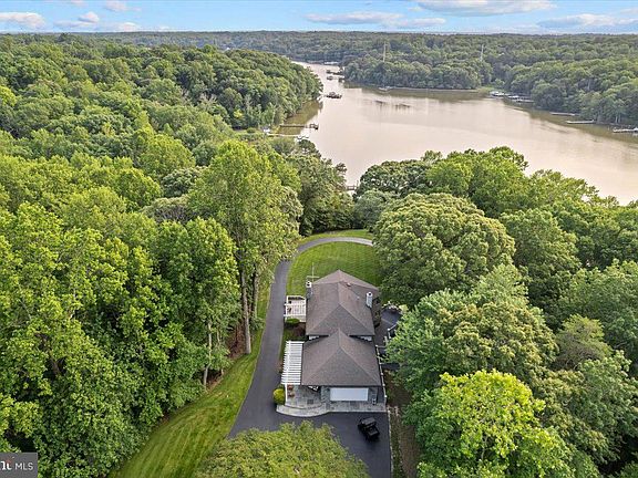 PERRY POINT ON ST. LEONARD CREEK is now available!! For the first time in 20 years, and just an hour from Capitol Hill, this custom built 4300 SF home on a very private 6.4 acre deep water waterfront property, offers a unique home design and dramatic creek views. The home is a beautiful blend of rustic, contemporary and coastal. This area of St. Leonard Creek is private with almost no boat traffic; waterski or tube right off your dock! Welcome your guests at the bluestone patio and southerly entry porch with pergola. From the moment you enter the double front door you have a commanding view of the creek through the two story glass waterside wall (all new windows 2024). The open plan great room is the heart of the home where everyone loves to gather. Step outside and share meals and sunsets on the upper deck with exterior stairs to the waterside patio and screened room. Spending time in the kitchen? You'll appreciate the counter-height row of windows with water views, custom solid cherry cabinets, island cooktop and full appliance package. The breakfast area offers a fantastic view of the creek and the perfect spot for meals. Follow the custom wrought iron railings upstairs to a very private and beautifully positioned owner's suite. Enter double mahogany doors to more incredible water views, more wide plank white oak hardwood flooring and deluxe spa bath with heated floors. This upper level also includes three guest bedrooms and a large hall bathroom with stone finishes and heated floors. Back through the great room, head to the lower level family room, with a fully outfitted bar including a 4-tap kegerator, ice machine, popcorn machine, dart board and more. Lower the retractable screen and project high definition surround sound games or movies. “Perry Point Ale House” is the perfect home party bar for large or small gatherings. Also on this level there is large room for storage. Located at the end of a private lane, Perry Point is a sanctuary with eagles and ospreys, songbirds and deer. The manicured grounds are surrounded by hardwoods, and the house is nestled perfectly in this park-like setting. At the creek's edge, on the expansive one-of-a-kind bulk headed flat lawn, you'll enjoy seasons of sun and color changes, sunsets, lawn games, crab feasts and tent parties. The lighted pier includes two 12,500 lb boat lifts. Boating, swimming, watersports, kayaking, fishing, crabbing, sunsets, bonfires; the outdoor living areas offer so much variety for the owners and guests. It just doesn't get better than this - put your coastal lifestyle into high gear! *The waterfront shed has its own electric panel and SMECO account, and its own well.* LIFESTYLE PACKAGE. This property is offered with a 'lifestyle package'. This package includes the Polaris Ranger 4 x 4 ATV, the live-edge California redwood slab table and chairs for 10, bedroom and living furniture, bar equipment, table shuffle game, indoor and outdoor furniture, kayaks and much more. READY FOR QUICK SETTLEMENT. See MLS for multiple inspection certificates such as passing well tests, UST inspection passing test results, passing septic inspection results, WDI certification!!