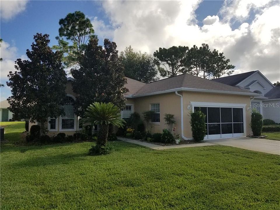 OWNER SAYS BRING OFFERS SHE IS READY TO MOVE CLOSER TO HER FAMILY. Like new Caneel Bay model home in Oak Run - The Fountains - Oak Run is an active 55+ community; 3 bedrooms 2 bath rooms with 2 car garage on a maintained lot includes lawn maintenance; new laminate wood flooring throughout, new paint and A/C in 2018, kitchen remodeled with new quartz counter-tops, cabinets and sink, new lighting, custom blinds throughout home (raise from both the top and bottom), new hot water heater, master bath has new shower door, rear lanai has a/c and adds an additional 180 sq ft, not included in the sq footage, new garage door opener and exterior paint. This home has great curb appeal an is a true delight to preview! Amenities include basic cable, 3 gated entrances, maintenance of common ground, 5 pools, 3 clubhouses, 18 hole golf course, driving range, shuffleboard, billiards room, library, tennis courts, bocce courts. This beautiful home with all these amenities in sunny central Florida at an affordable price won't last long!
