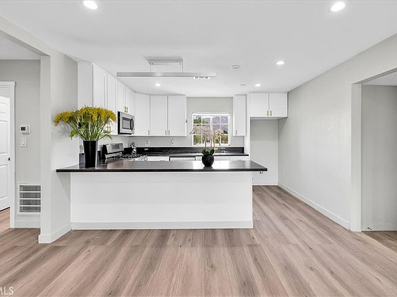 Step inside to discover new flooring, fresh interior paint, and recessed lighting that creates a bright, contemporary atmosphere. The upgraded kitchen is the heart of the home, featuring soft-close cabinetry, sleek quartz countertops, and ample space for cooking and entertaining.