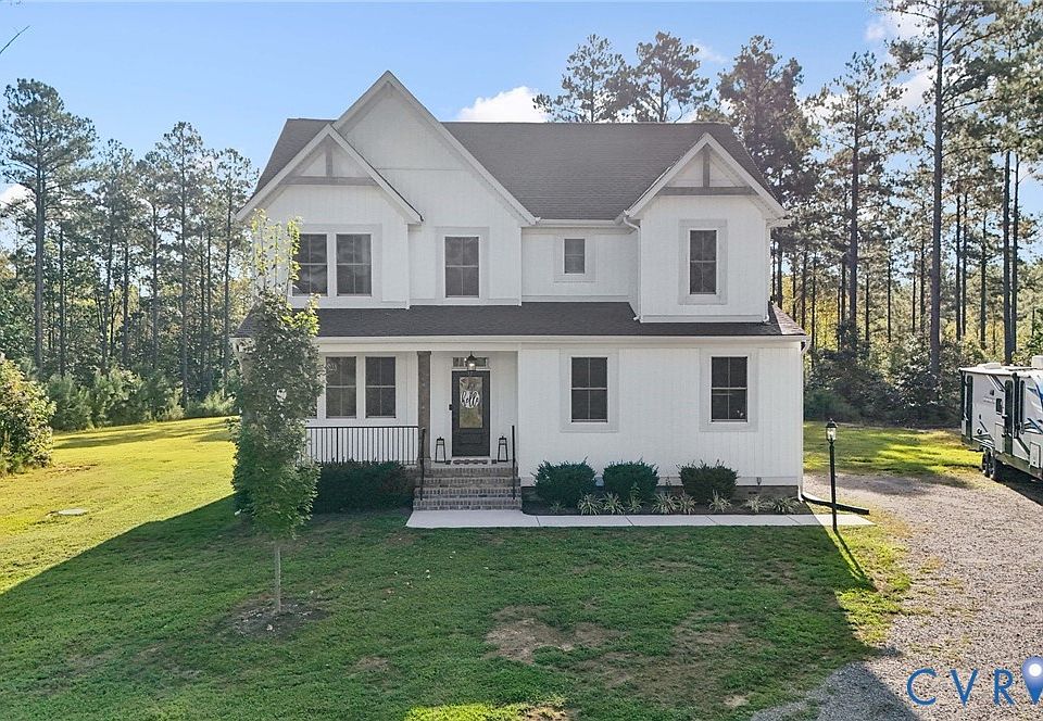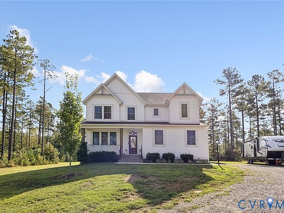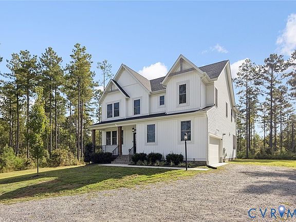 NEWLY BUILT IN 2022, this 2739 sq ft Craftsman style home is situated on 10.7 wooded ACRES in Rock Creek located in beautiful Hanover County with COMCAST HIGH SPEED INTERNET! This home has 4 bedrooms (septic is approved for 5 bedrooms) 2 1/2 baths and 2 car side load garage! The open concept first floor has 9' ceilings and wide plank LVP flooring throughout the majority of the 1st floor. The spacious family room has a custom bar area, gas FP with reclaimed wood beam mantle, metal balusters on the staircase and direct access to back COVERED porch area. This home features an upgraded gourmet kitchen w/ oversized island (w/storage on both sides), gas cooktop, hood, built in oven and microwave, herringbone backsplash, granite counters, 42' cabinets, walk in pantry, etc. The spacious dining area has large windows for a wonderful view of the backyard. The mudroom is adjacent to the garage. Tankless water heater and dedicated receptacle in garage for your own freezer! The large 2nd floor primary bedroom w/ TWO walk in closets! The upgraded en-suite primary bath has raised double vanity, water closet, luxurious soaking tub and separate shower tiled to the ceiling! The additional 3 bedrooms have walk in closets! There is a large loft area for relaxing, gaming area, etc. The 2nd floor laundry room has LV flooring and W/D hookups. Outside this home has a COVERED FRONT PORCH AND COVERED BACK PORCH for relaxing! The spacious driveway offers private parking and access to the side load 2 car garage. The home has 10.7 mostly wooded acres. Back property line has creek frontage. See supplements for plat, floor plan and VA Health dept docs reflecting septic can support 5 bedrooms. Rock Creek is a beautiful community with paved roads great for walking, biking, etc. within 3 miles of the local fire station and just a quick drive to shopping and interstates. This home has too many features to mention but brings peace of mind with all NEW systems and appliances (2022) including emergency gas (propane) backup heat!