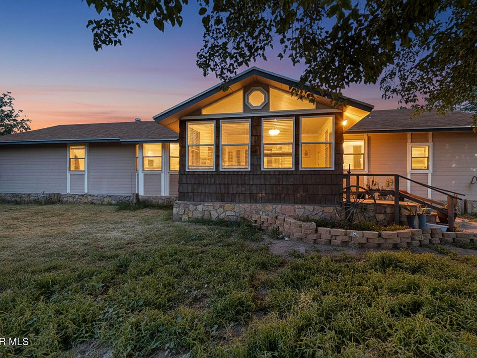 Welcome to peaceful country living. This 2000 sq ft home sits on half an acre & is fully fenced in. A sunroom/enclosed patio welcomes you into an open concept living area. The kitchen has tile countertops, quality custom wood cabinetry, & a walk-in pantry. Spacious 3 bedroom, 2 bath home. One of the rooms can be rented out as an apartment, as it has its own kitchen, bathroom, & door leading outside. New refrigerated air cools the entire house perfectly. RV parking with sewer, & utility hook ups. An ample 2000 sq ft workshop is wired for electricity, & air, making it perfect for a car shop or any business. You can even have horses or livestock. You can also turn it into more living space. It has different entries & windows. The property is adjacent to a park and running trails. It has water rights. Please keep in mind the home will be completely emptied, professionally cleaned, & yard will be freshly manicured upon closing. Appliances will convey.