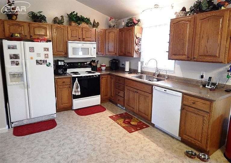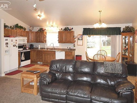 Country ranch just off of I-69 has just over an acre, 2 car attached garage with additional 24 x 32 detached garage. Open floor plan with cathedral ceilings and a slider off kitchen/dining room that leads to a very nice covered deck overlooking the spacious yard.