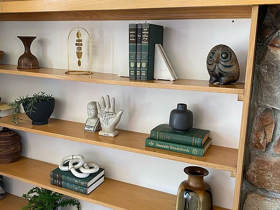 This furnished Midcentury style home is newly renovated with upscale new decor. You'll love the new chefs kitchen, with quartz countertops, custom maple cabinets with marble backsplash and all new stainless steel appliances. Enjoy 3 bedrooms, one with beautiful canopy King bed, and two with Queen beds, all have stylish West Elm bedding. Both bathrooms are sparkling new with custom tile, the primary bath has a double sink. The home is spacious and includes use of designer furnishings, art, and unique mid-century touches! In the living room you will love the large open floor plan with cool indoor fireplace, exposed beams and wood floors throughout. Open the French doors to the giant patio with outdoor dining area which seats six, string lit trellis and massive backyard with hammocks, shed, succulents and olive trees, bordered by a new modern redwood fence...the outdoor area offers a propane gas fire pit with Acapulco chairs, a propane bbq and large hot tub. The kitchen has everything needed for every day living: two types of coffee makers, tea kettle, plates, silverware, cooking utensils, pots, pans, and baking sheets for cooking, and so much more! The entire home is magazine worthy with every detail thoughtfully done. Plenty of room in the 2 car garage for storage, plus a brand new washer and dryer. Great sunset and mountain views, parking for several cars, close to schools and shops! Ideally located just 10 mins from downtown Joshua tree, 15 mins from the Joshua Tree park entrance, 10 mins to shops and cafes in downtown Yucca Valley, and 15 mins to Pioneertown. No smoking allowed inside the house. 6 or 12 month lease options. Stunning newly-renovated home, fully furnished, includes all cookware, linens, etc. Minimum 6 month lease. Renter pays for spa service and utilities. Non-smoking tenants only. . Serious inquiries only, no arbitrage. Available end of February 2025. Do not disturb current tenant, showing is by appointment only.