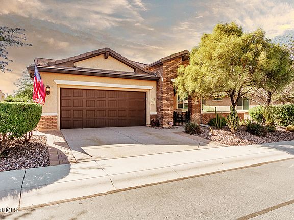 Welcome to Anthem at Merrill Ranch! This highly upgraded Sanctuary model offers 2BR, 2BA + den and over 1,800 sq. ft. of elegant living. Enjoy owned solar (low utility bills) and tile floors throughout (except bedrooms). The kitchen features expansive granite counters, white cabinets with roll-outs, and stainless steel appliances. The custom shutters, and RO + water softener at a touch of daily luxury. The open floor plan flows to a stunning low-maintenance backyard oasis featuring an oversized pergola, built-in gas fireplace, artificial turf, remote-controlled shades and lights, and extended gas line for BBQ. Surrounded by lush landscaping and a brick privacy wall—this home is ready for you to relax and enjoy the good life at Anthem at Merrill Ranch!