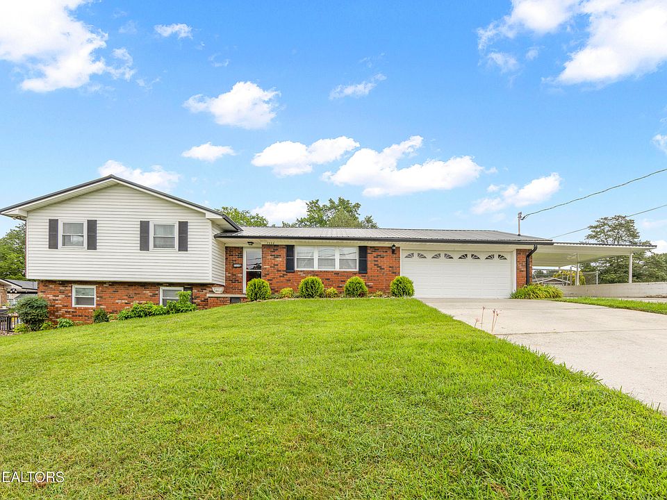 COMFORT & CONVENIENCE! This delightful basement ranch offers a spacious, versatile layout. Enjoy 3 main-level bedrooms, including a primary suite with an updated bathroom and walk-in shower. The bright, open living area flows effortlessly into the formal dining room and eat-in kitchen, which features a breakfast bar and ample cabinet space—perfect for casual meals or gatherings. Step outside to a large, covered back patio overlooking a fenced yard, ideal for entertaining and outdoor enjoyment. The finished basement offers a versatile den/bonus room, plenty of storage, and a workshop area for your projects or hobbies. Parking is a breeze with a 2-car garage and an additional driveway with a carport. Nestled just minutes from all the amenities of Powell and Halls and offering an easy commute to downtown Knoxville, this charming home is a great value!