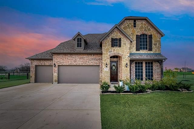 Stunning 4 bed, 3.5 bath Stonehollow home located on an acre of land with a gorgeous exterior and an oversized three car garage with work benches and shelves! Elegant entry with hand-scraped hardwood floors and an additional private study. Chefs kitchen with Maytag stainless steel appliances, deep farmhouse sink, pot drawers and walk-in pantry. Cozy living room with stone wood-burning fireplace and oversized wooden mantel. The downstairs is also comprised of a formal dining room, a half bath and a large utility room with room for an additional fridge or freezer. Charming master bedroom with a bench seat and master bath with separate vanities, soak tub, shower with rain head, and 2 closets! Upstairs youll find 3 split beds, 2 full baths, game room, and a media room with theater carpet and elevated flooring! Massive backyard features fire pit with seating and enclosed raised garden. Amazing neighborhood amenities such as horse & nature trails and a stocked fishing pond! Blue Ridge ISD.