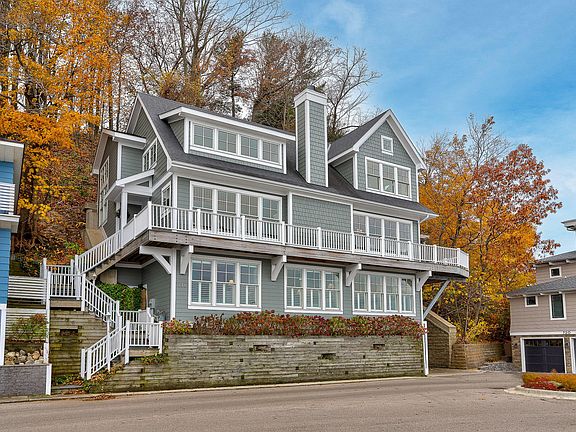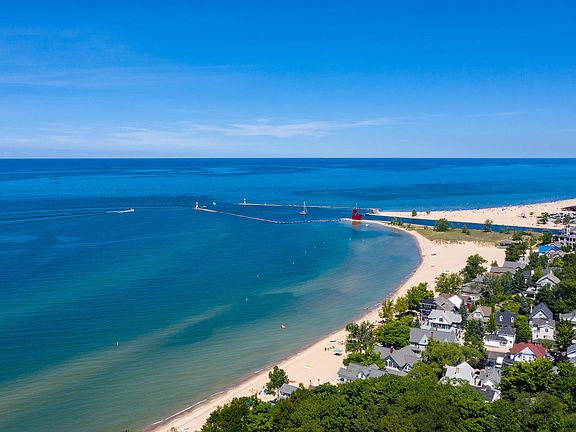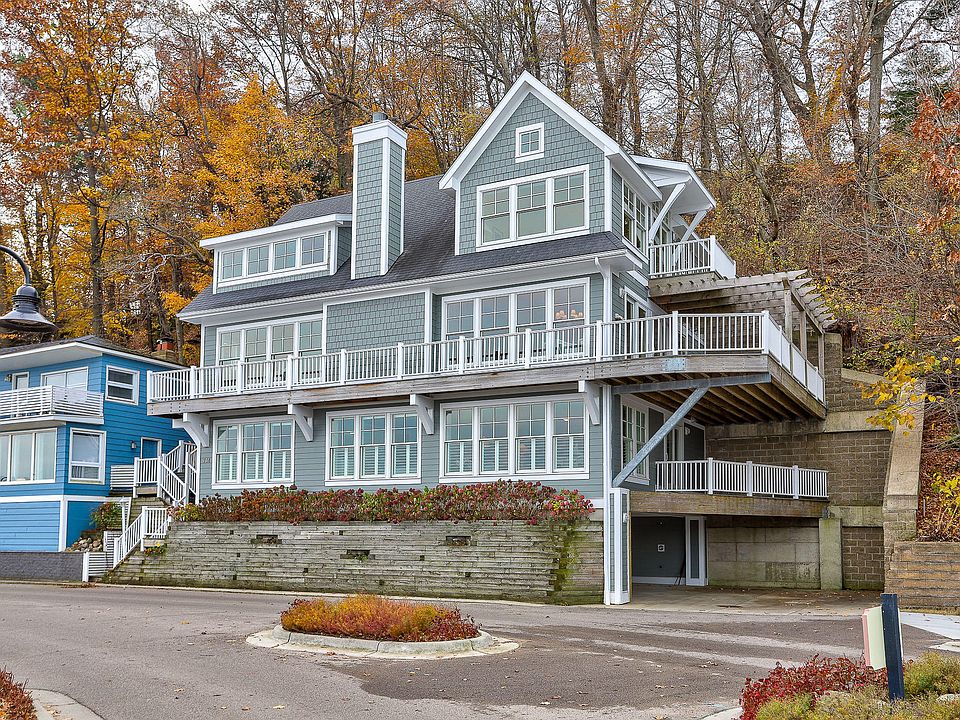 Macatawa, Michigan: A haven to the lucky since the 1800's. This custom built newer home has the most phenomenal Lake Macatawa views from every room. Being part of the Macatawa Park Cottagers Association, which is a gated community, grants access to the famous Big Red Lake Michigan Beach, the most sought after beach in all of West Michigan. This high-quality custom home was built into the side of the dune, standing 4 stories high and features totally open concept living, a Gorgeous fieldstone fireplace, wide plank wood floors, gourmet kitchen, walk in pantry and conveniently an elevator. The entire 4th floor is an unbelievable master suite--imagine laying in bed and seeing the moon and stars over the lake.