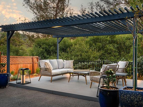 Outside, the yard is enhanced with new landscaping, lighting, a deck, retaining wall, and updated irrigation, overlooking a private, lush greenbelt.