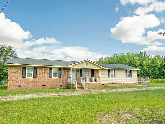 Nestled in a peaceful country neighborhood on a spacious lot, this beautifully maintained home perfectly blends comfort, space, and style. A circular driveway leads to the inviting covered front porch. The kitchen boasts custom oak cabinetry, a stylish tile backsplash, generous counter space, and a breakfast bar for extra seating. A large addition, currently used as the primary bedroom, offers a spacious and private retreat with French doors opening from the living room and a separate exterior door leading to the outdoor patio. The ensuite bathroom features a modern vanity, and a relaxing shower/tub combo. This versatile space could easily serve as a family room, den, or guest suite to fit your lifestyle needs. Enjoy the convenience of a versatile laundry/mud room with access from inside or through the rear of the home. Step outside to a large yard offering endless possibilities for gardening, play, or creating your dream outdoor space. Brand new HVAC system! Located just 46 miles from Myrtle Beach and 25 miles from Florence, this home offers the best of both worlds—country living with comfort, convenience, and charm.