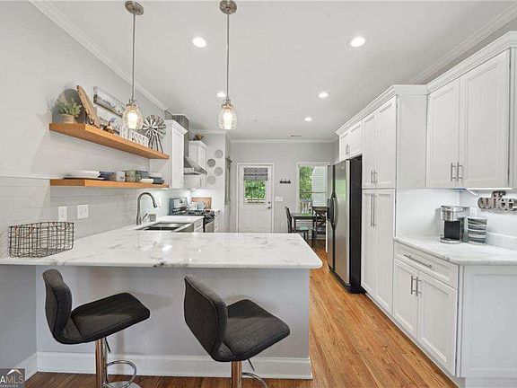 Modern Comfort Meets Marietta Charm - Just Minutes from the Square! Welcome to 734 Frasier Circle a beautifully updated home tucked into a quiet neighborhood with unbeatable access to the energy and charm of Marietta Square. This home is packed with thoughtful upgrades that make it move-in ready and maintenance-friendly. Step inside to freshly painted interiors and beautifully resurfaced hardwood floors that flow through the main living spaces, including the updated kitchen - featuring new granite countertops, custom soft-close cabinetry with sliding shelves, and a sleek stainless vent hood. Both bathrooms have been completely remodeled with stylish vanities, granite counters, and tiled bathroom flooring. Additional upgrades include brand-new high-efficiency HVAC system with an air purification unit and a new hot water heater professionally relocated to the crawl space - which also includes a dehumidifier for year-round protection. Enjoy peaceful mornings on your back deck, and stress-free maintenance with installed gutter guards already in place. Whether you're a first-time buyer, investor, or simply looking to downsize in style, this gem combines quality finishes with a location that can't be beat. Come experience the perfect blend of comfort and convenience just minutes from Marietta Square!