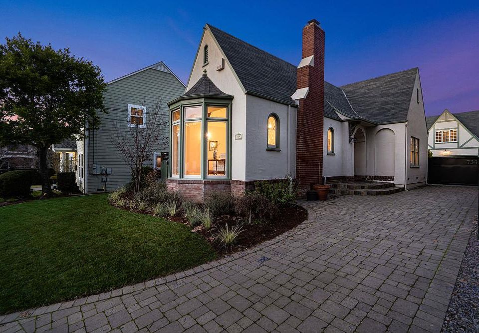 Located a few short blocks from downtown Burlingame, this lovingly maintained vintage home combines the best of urban, walkable living with a private yard in the suburbs. This single level home with three bedrooms and two baths is filled with period details, light fixtures and knobs and hardware. The spacious kitchen has been updated and the house also has air conditioning and a fiber internet connection with up to 1GB upload and download speeds. A door in the kitchen leads to a partial basement with storage, furnace and water heater.The living room is filled with natural light from a bay window, and beamed ceilings and period sconces and fixtures add visual interest. The formal dining room continues the theme, and it would also make a great family room. Above the detached garage, a finished attic space with vaulted ceilings and a skylight makes for a great potential guest space, hobby area or home office. The space has an ethernet connection to the house for freeze free Zoom calls.