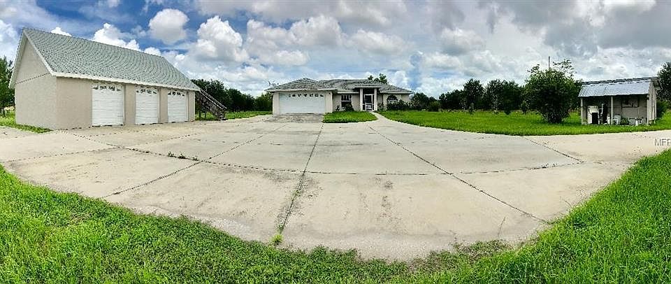 Beautiful property with 5 acres, two sheds, a newer three car detached garage with large loft upstairs for storage area built with trusses to allow for future use as enclosed loft, mother in-law suite or office area. . You will have plenty of storage room in the large metal barn at back of property there is also an irrigation system on the property for the existing and future fruit trees or any other type of plant you desire. The front and back ponds on the property were dug down to reach the springs and should not go dry. Property is also across from Duette State park, access is available to the park through keyed gate via Park Services. You have multiple bamboo stands on the property including Giant Timber Bamboo. Come and give this home your special touch. Your property has plenty of room for a pool, boat or rv parking. Looking out your front door or dining room window at the pond and beautiful green grass will just take you away from the noise and traffic of the city life. There are exotic fruit trees on the property . You will have three bedrooms and two bathrooms with the master bath having a double sink, shower and separate tub. Your living room over looks the pasture area and your back patio that you will have plenty of room for grilling or having a family outing. It is just a short walk to the barn at the back of the property that has an insulated ceiling. The previous owners raised show rabbits in this area there are several livestock features on this property. Inside this large barn has a cement slab. Outside the barn there is also a hose off area. Come and have yourself a little piece of paradise in the country while it is still there.