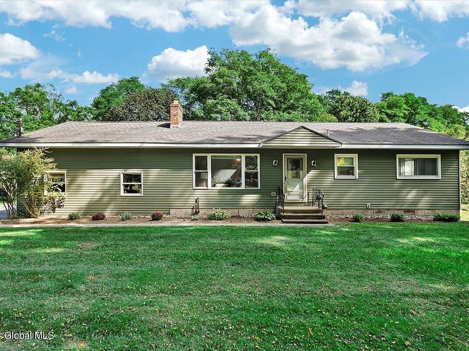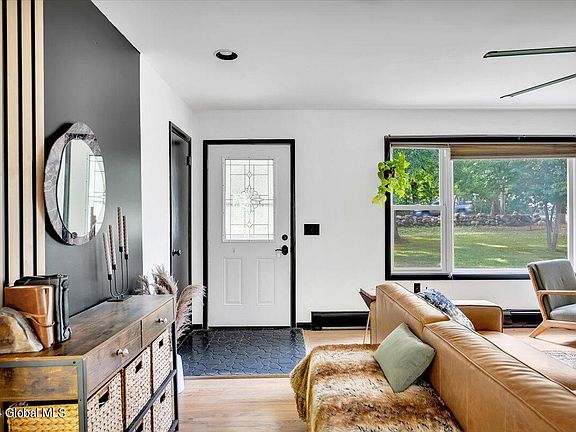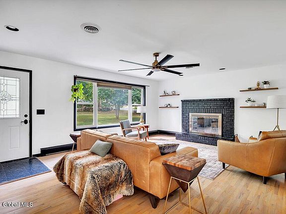 Welcome to this beautifully updated ranch located in the serene and private setting of Ballston Spa. Step into a cozy living room featuring a wood-burning fireplace and a large front window that fills the space with natural light. Continue into the kitchen, which was fully renovated in 2023 with refinished cabinets, a new marble backsplash, stylish countertops, and a new stainless steel refrigerator. The entire home has been freshly repainted, new light fixtures and hardwood floors flow throughout. Step out onto a spacious back deck that overlooks two acres of inviting yard, with a fire pit, perfect for relaxing or entertaining. This home has been completely refreshed and is move in ready